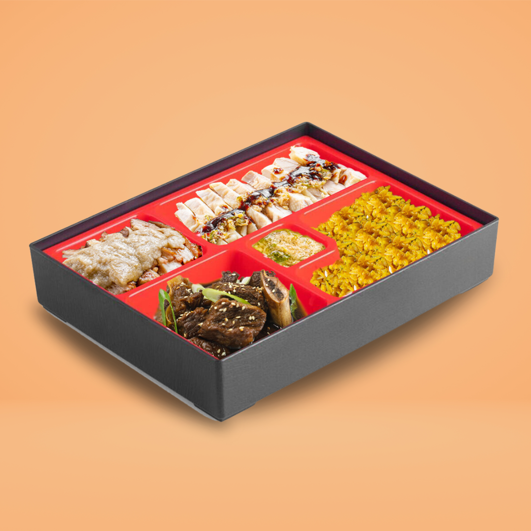 Bento Box: A compact, compartmentalized meal container offering a balanced assortment of delicious, ready-to-eat foods. A convenient and portable option for a satisfying and varied dining experience.