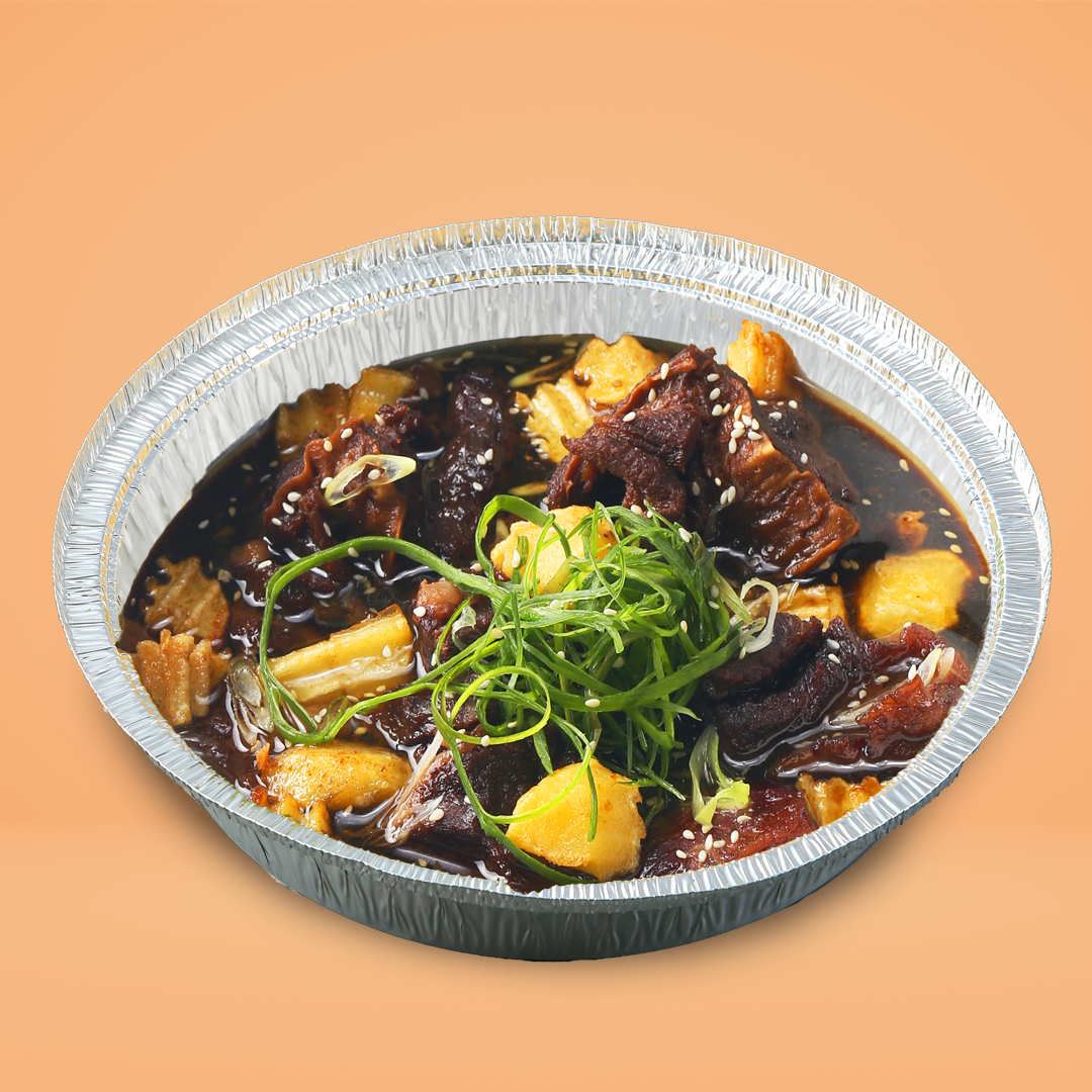 Our Korean Beef Stew is slow-cooked to perfection, featuring tender beef chunks in a rich, savory-sweet soy-based broth with garlic, onions, and a hint of sesame. Packed with Potato chunks!